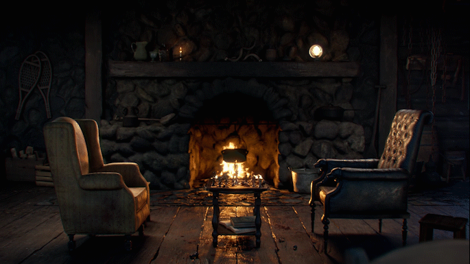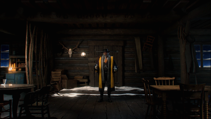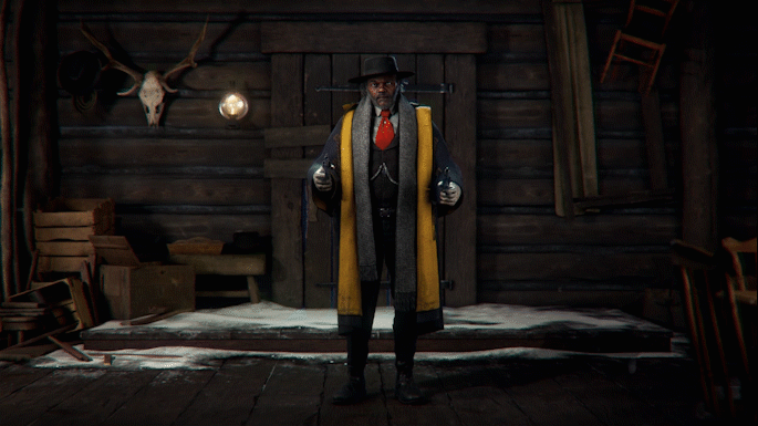 쿠엔틴 타란티노 감독의 영화 헤이트풀8 영화 속 주요 배경인 눈 덮인 산장에서 벌어지는 상황을 함축적으로 표현한 장면입니다.