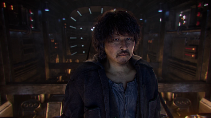 설국열차의 후반부 장면을 모티브로 남궁민수 역의 송강호가 윌포드가 있는 마지막 방의 문을 폭파시키려는 장면을 작업했습니다.