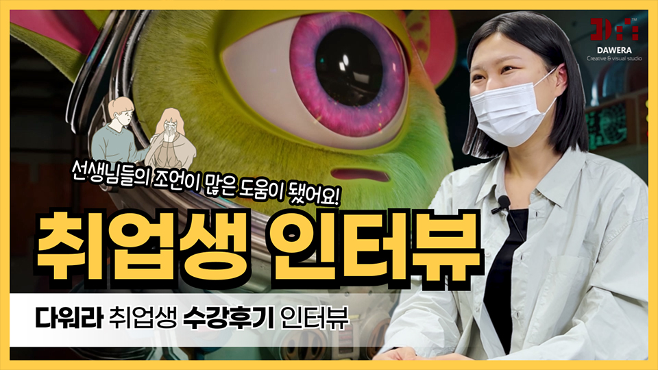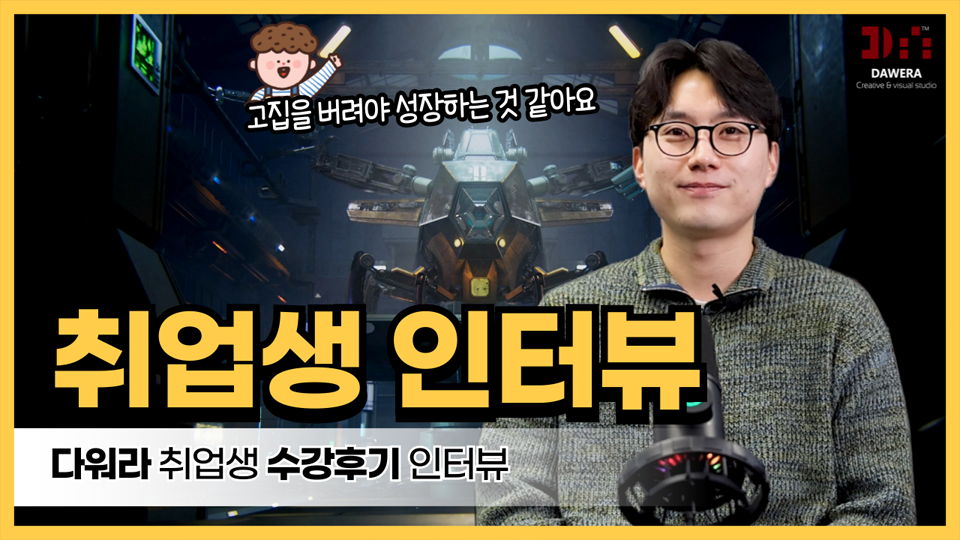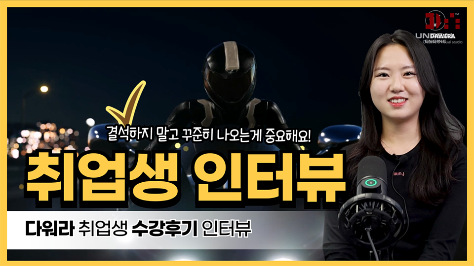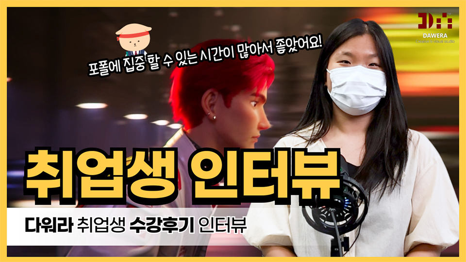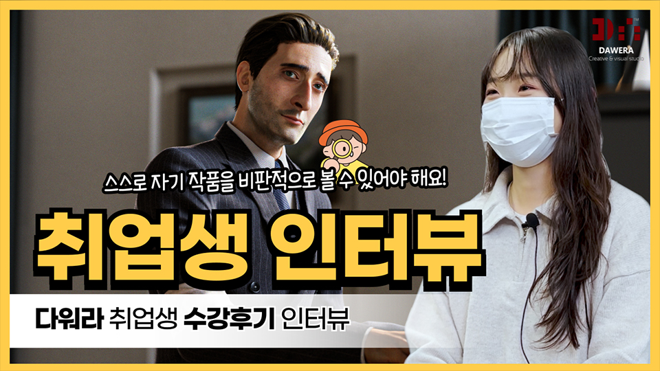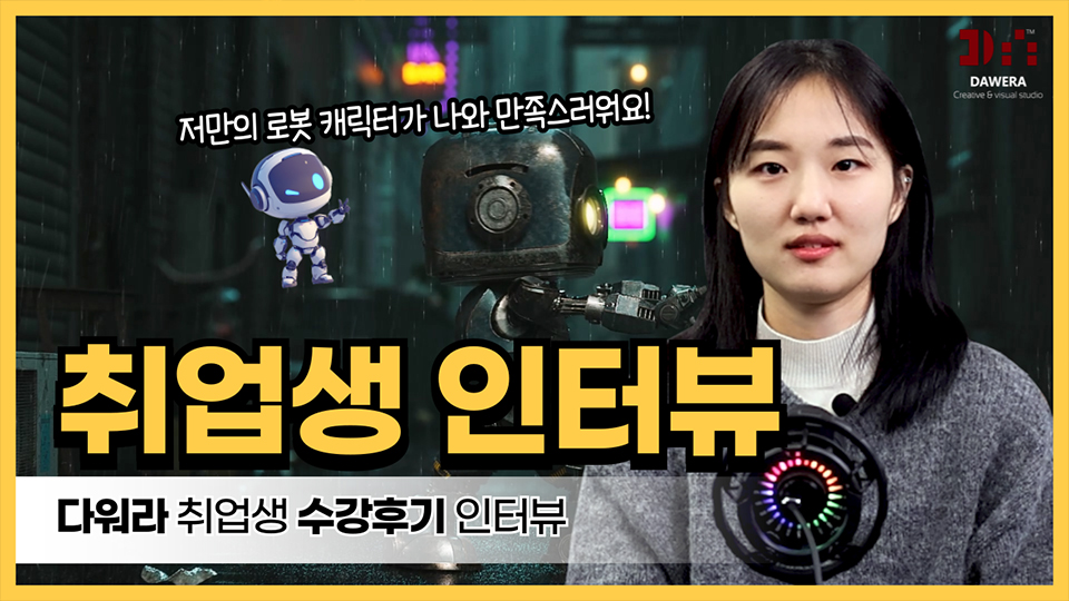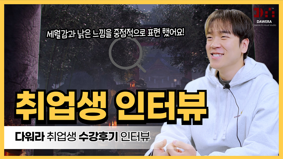 타 학원에서는 하나의 파트를 선택하고, 최소 3개월 이상의 기초반 과정을 수료해야 했었는데, 기획부터 합성까지 모든 과정이 담긴 포트폴리오를 제작할 수 있어서 이 학원을 선택하게 되었습니다.