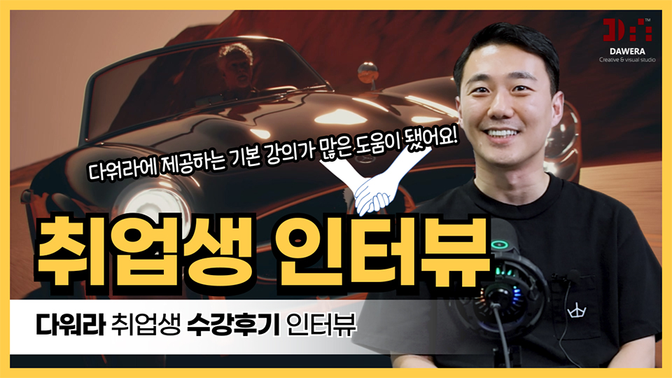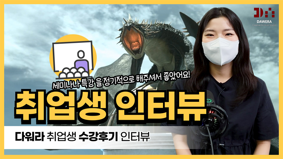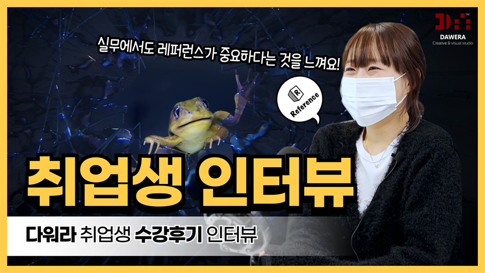 타 학원에서는 하나의 파트를 선택하고, 최소 3개월 이상의 기초반 과정을 수료해야 했었는데, 기획부터 합성까지 모든 과정이 담긴 포트폴리오를 제작할 수 있어서 이 학원을 선택하게 되었습니다.