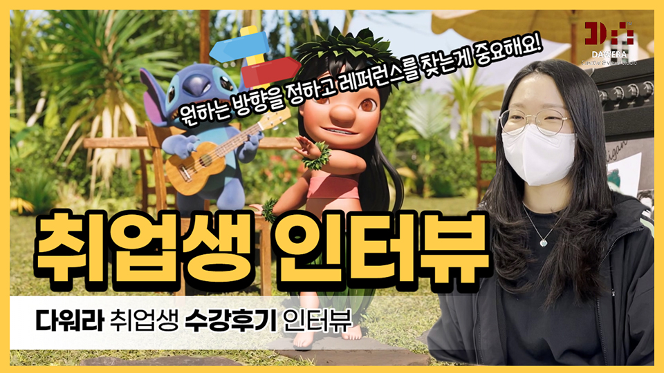 다워라에서 룩뎁 포트폴리오와 언리얼 엔진 포트폴리오를 완성해 DEXTER에 합격한 안수지 학생의 다워라 수강 후기 인터뷰입니다.