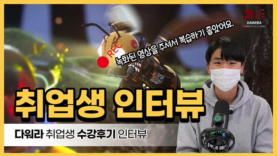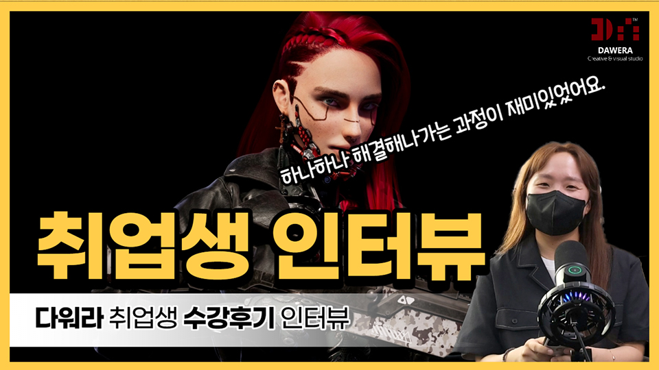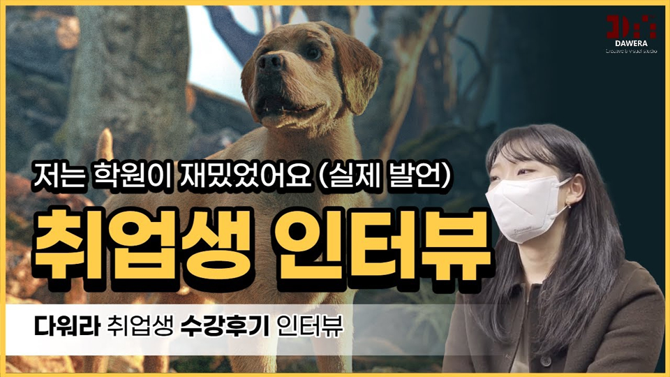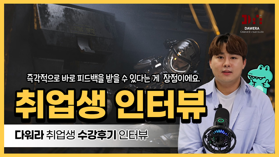 타 학원에서는 하나의 파트를 선택하고, 최소 3개월 이상의 기초반 과정을 수료해야 했었는데, 기획부터 합성까지 모든 과정이 담긴 포트폴리오를 제작할 수 있어서 이 학원을 선택하게 되었습니다.