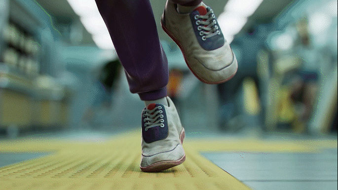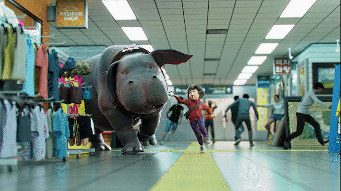 미자가 옥자를 데리고 도심의 지하상가 한복판을 누비며 도주하는 숨가쁜 상황을 묘사했습니다.