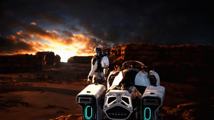 황무지 행성을 개척하는 외로운 우주인과 디즈니 “위시”의 주인공을 표현한 작품입니다.