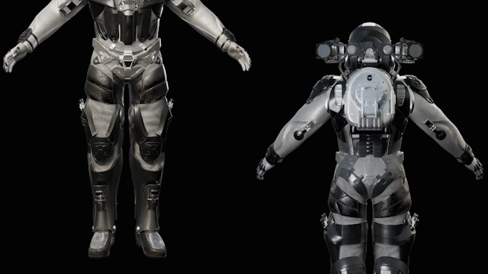 무엇보다 수트의 하드서페이스 모델링을 한땀한땀 성실하게 만들어낸 결과물이라 더욱 눈이 가는 작품입니다.