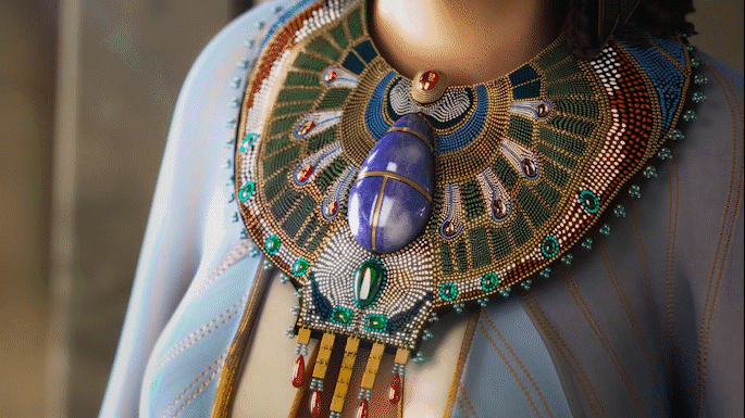 언리얼엔진으로 뉴스보도의 한 장면과 고대 이집트 문명의 마지막 정점인 클레오파트라의 모습을 표현했습니다.