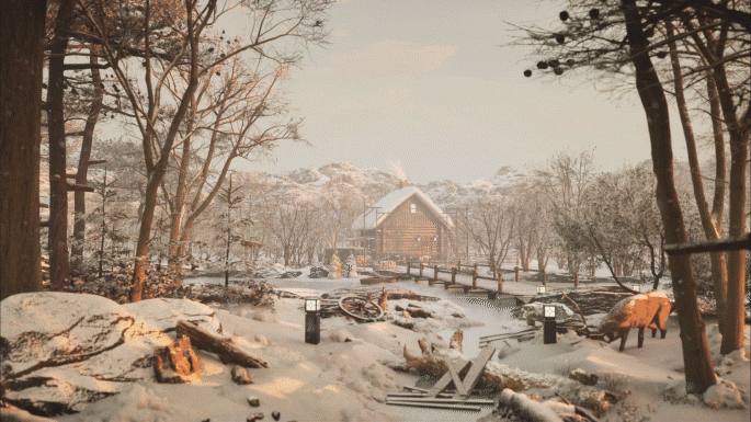 언리얼엔진을 활용해서 울창항 숲을 만들어 냈습니다. 거기에 다양한 시간대와 계절감을 빠르게 적용해서 멋진 작품을 만들어 냈습니다.