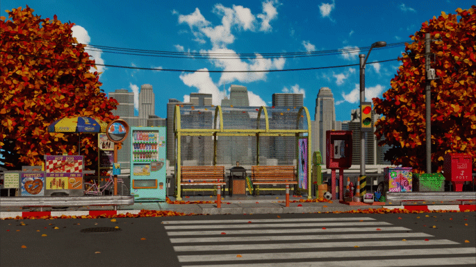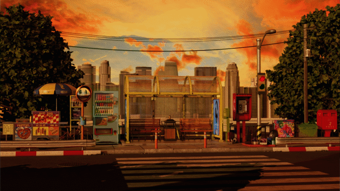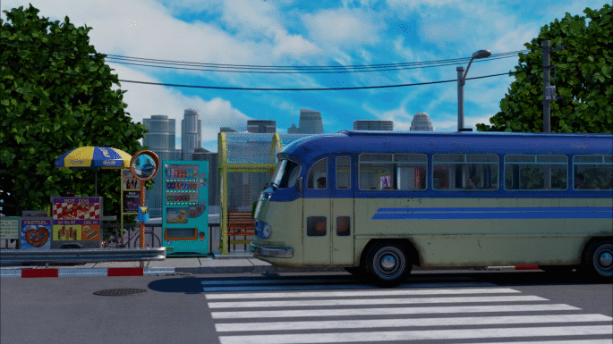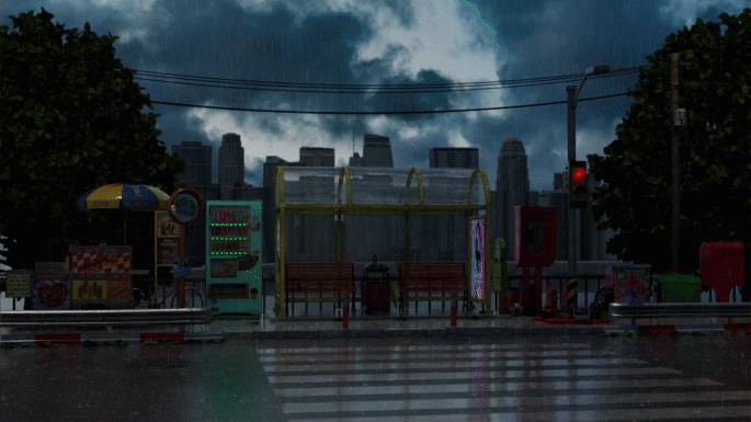 시간이 흘러가면서 다양하게 변하는 버스정류장의 환경과 분위기를 담담한 느낌으로 잘 표현해냈습니다.