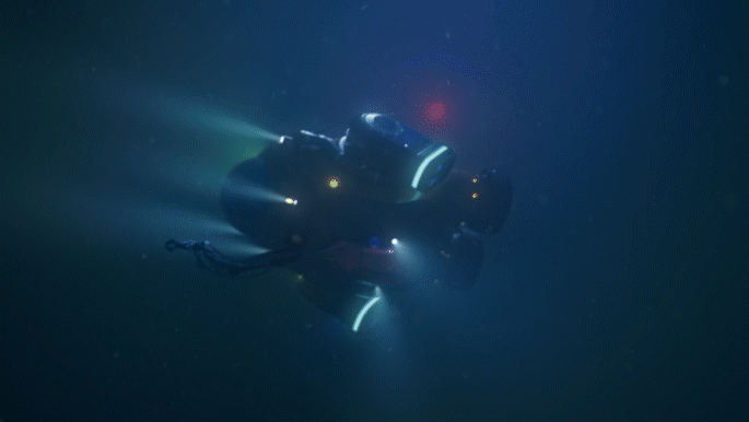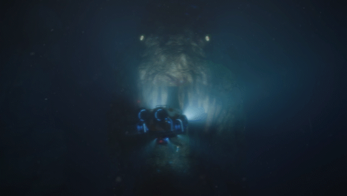 심해 탐사를 하는 잠수정이 탐사 중 맞닥뜨린 사건을 표현한 작품입니다.