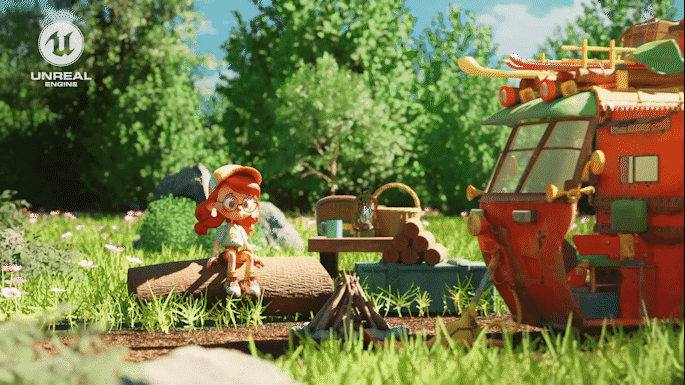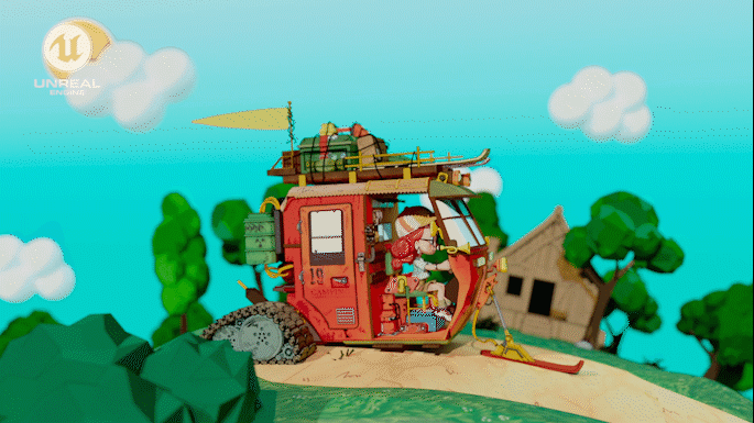 수 캠핑 차량의 독특한 외관과 툰 펜슬 효과도 깨알같이 그려넣어 자칫 단조로울 수 있는 툰쉐이딩의 약점을 완벽하게 보완했습니다.