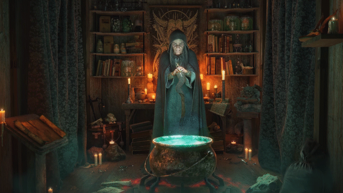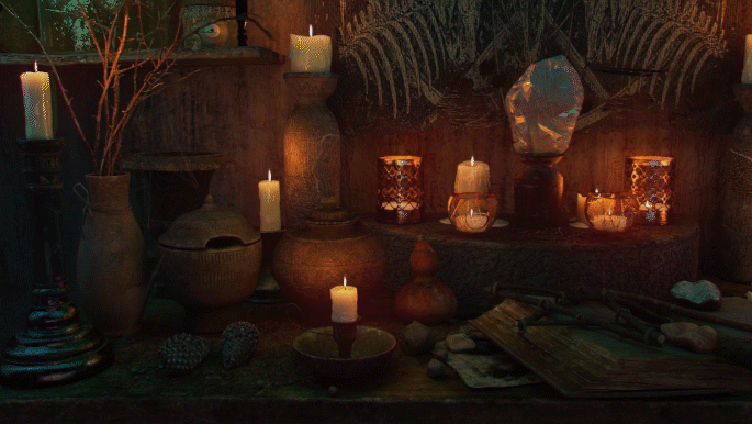 깊은 숲속 은밀한 곳에 위치한 마녀의 방을 표현한 작품입니다.
