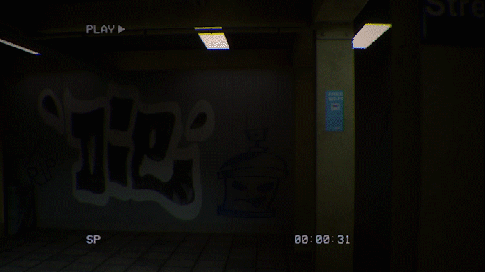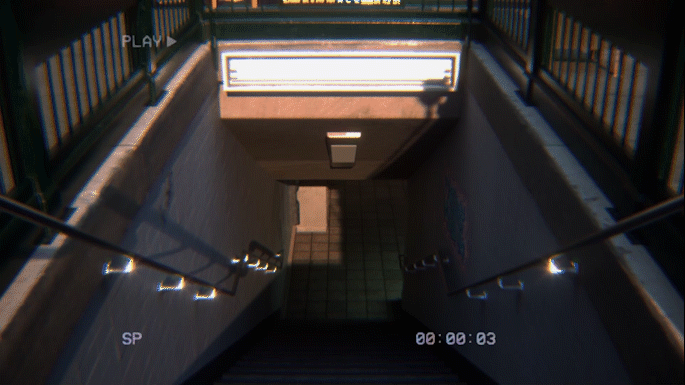 특히 옛날 VHS 캠코더로 찍은것 같은 연출을 적용해서, 페이크다큐 스타일의 공포영화의 한 장면 같기도 합니다.