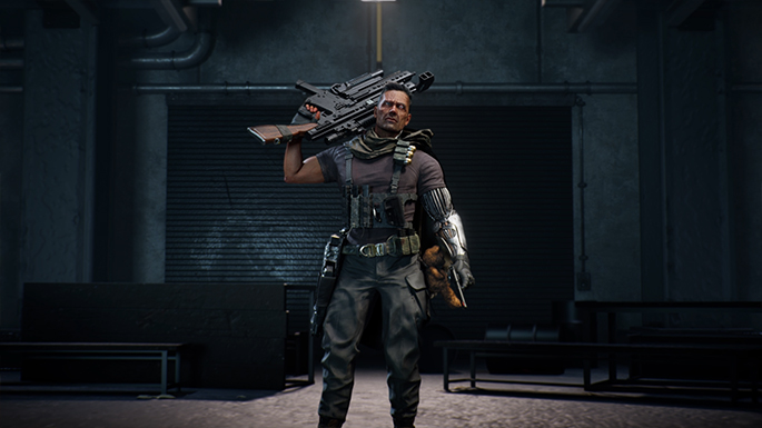자기 몸통만한 총을 한 손으로 거뜬하게 들어올리고,